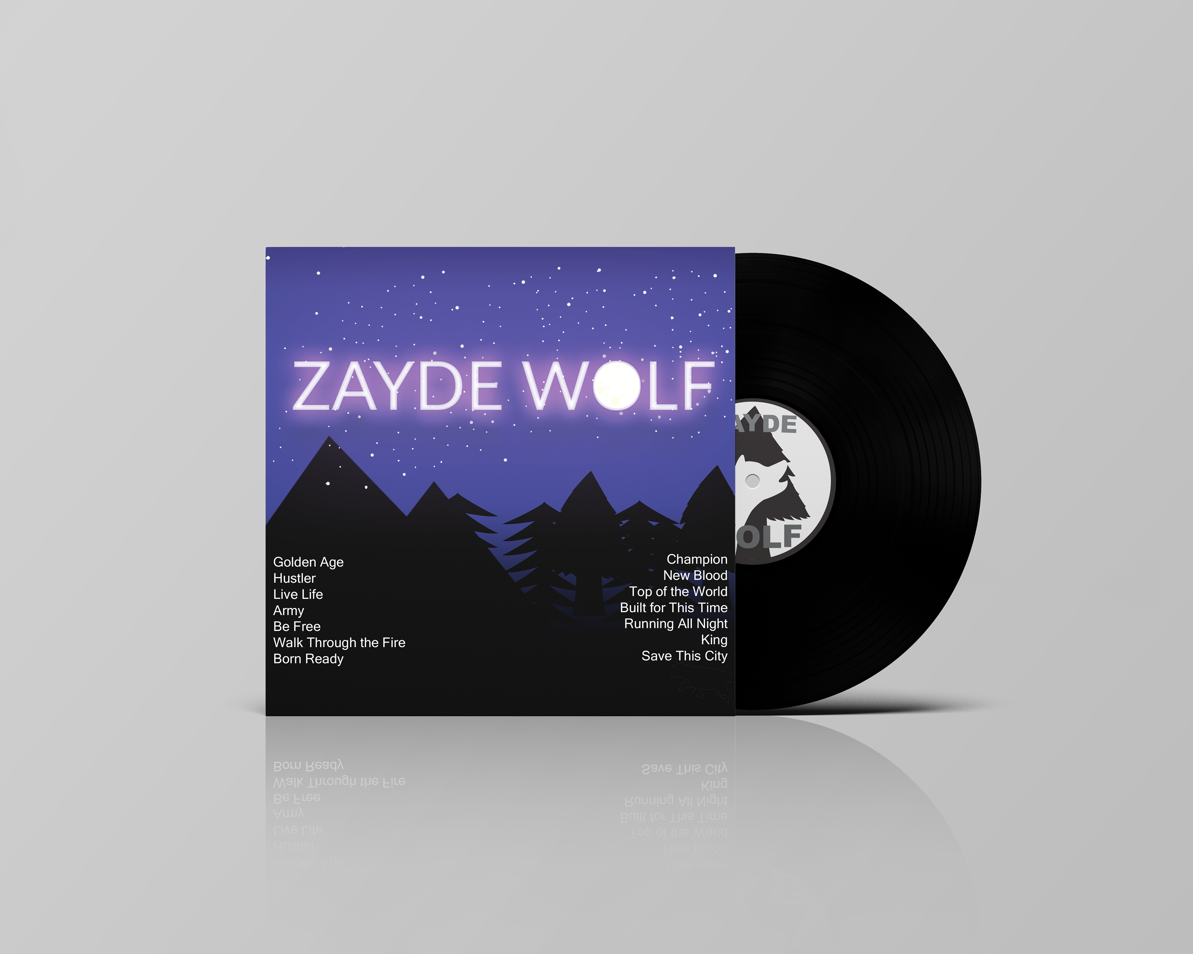 Here I created a customized set of albums for one of my favorite artist, Zayde Wolf. My designs were inspired by the name of the songs Be Free, King, and On Top of the World. The other designs were for stickers, a poster, and a shirt design.