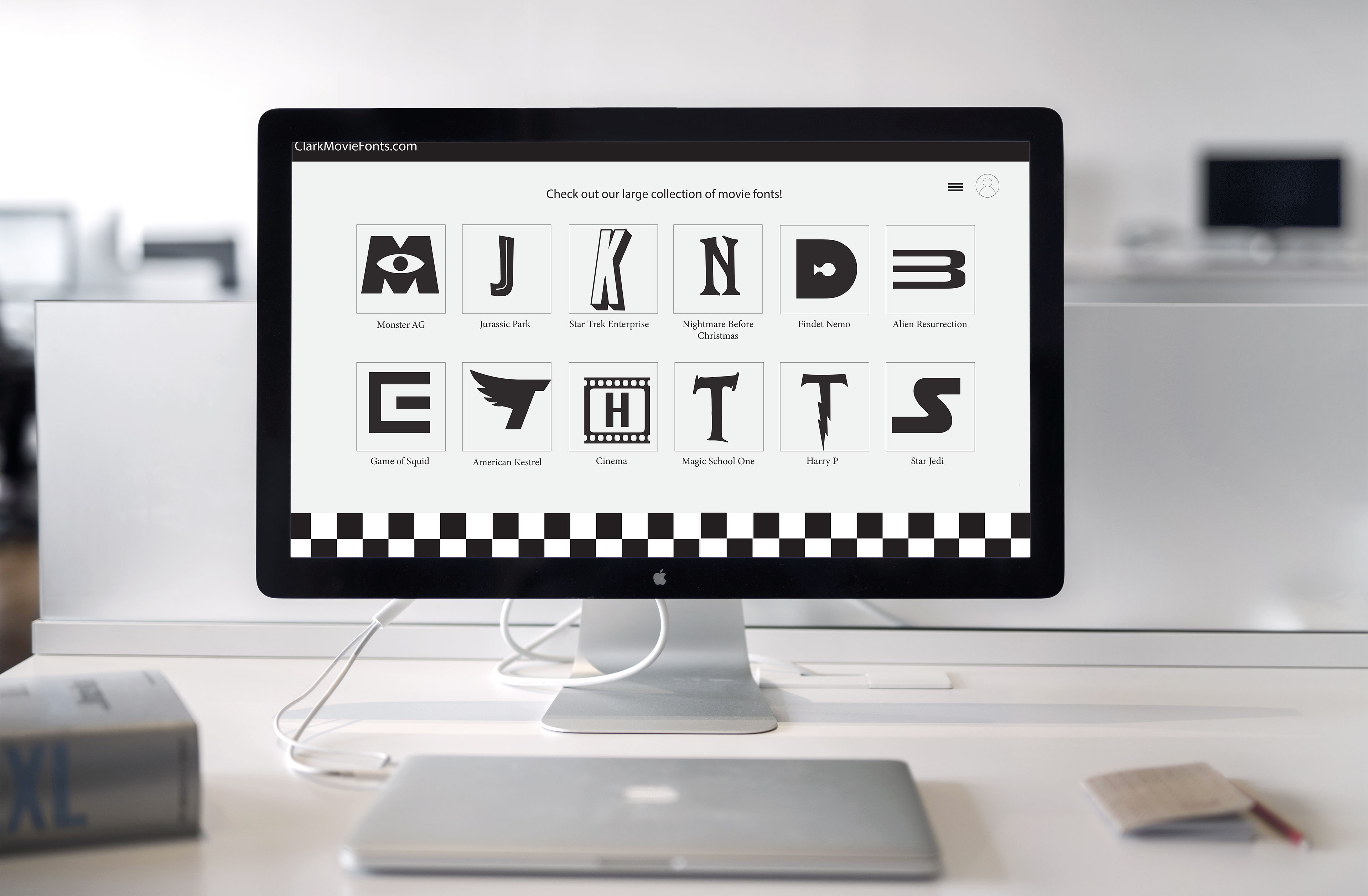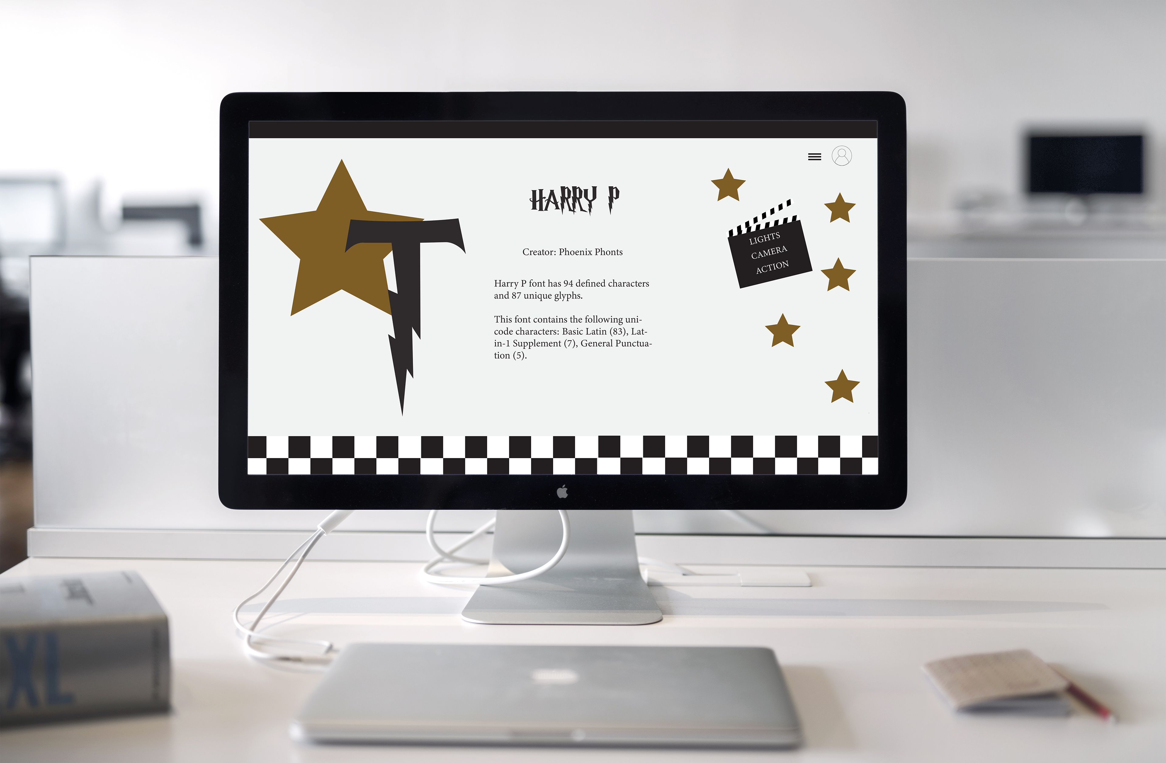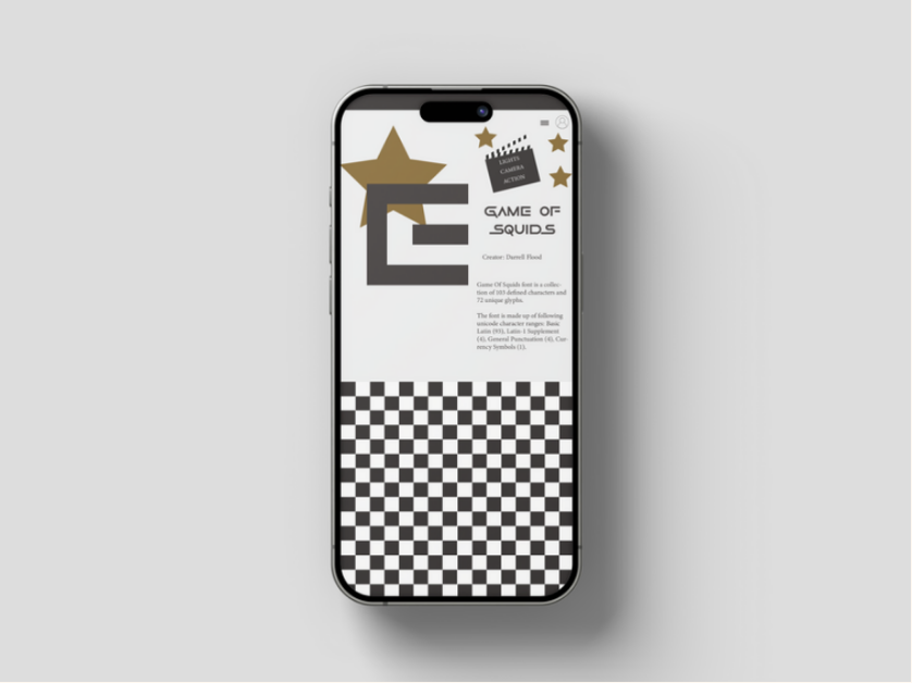 This is a project where I used movie font letters to create a display for phones and desktop layouts. I made custom designs for both displays. The theme was designed with the choice of font in mind.